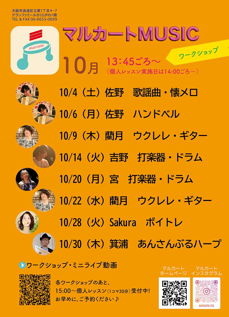 各ワークショップ開催日は15:00~個人レッスンも受け付けています。
