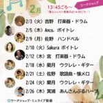 ワーク・ショップは約30~40分、ミニライブは約40分です。