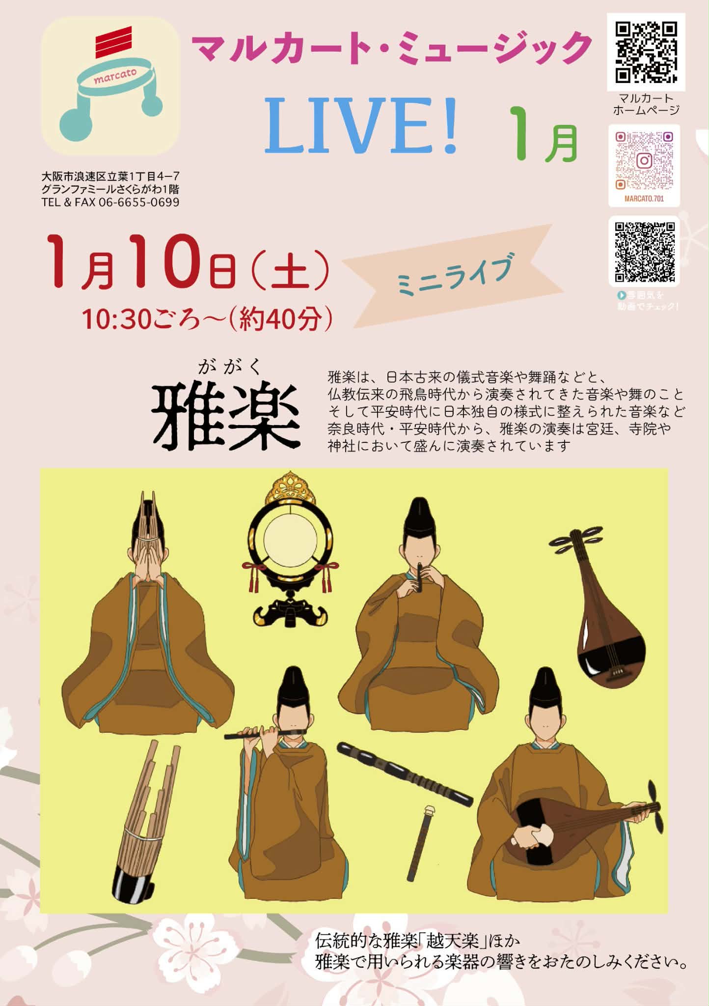 雅楽は、日本古来の儀式音楽や舞踊などと、仏教伝来の飛鳥時代から演奏されてきた音楽や舞のこと。