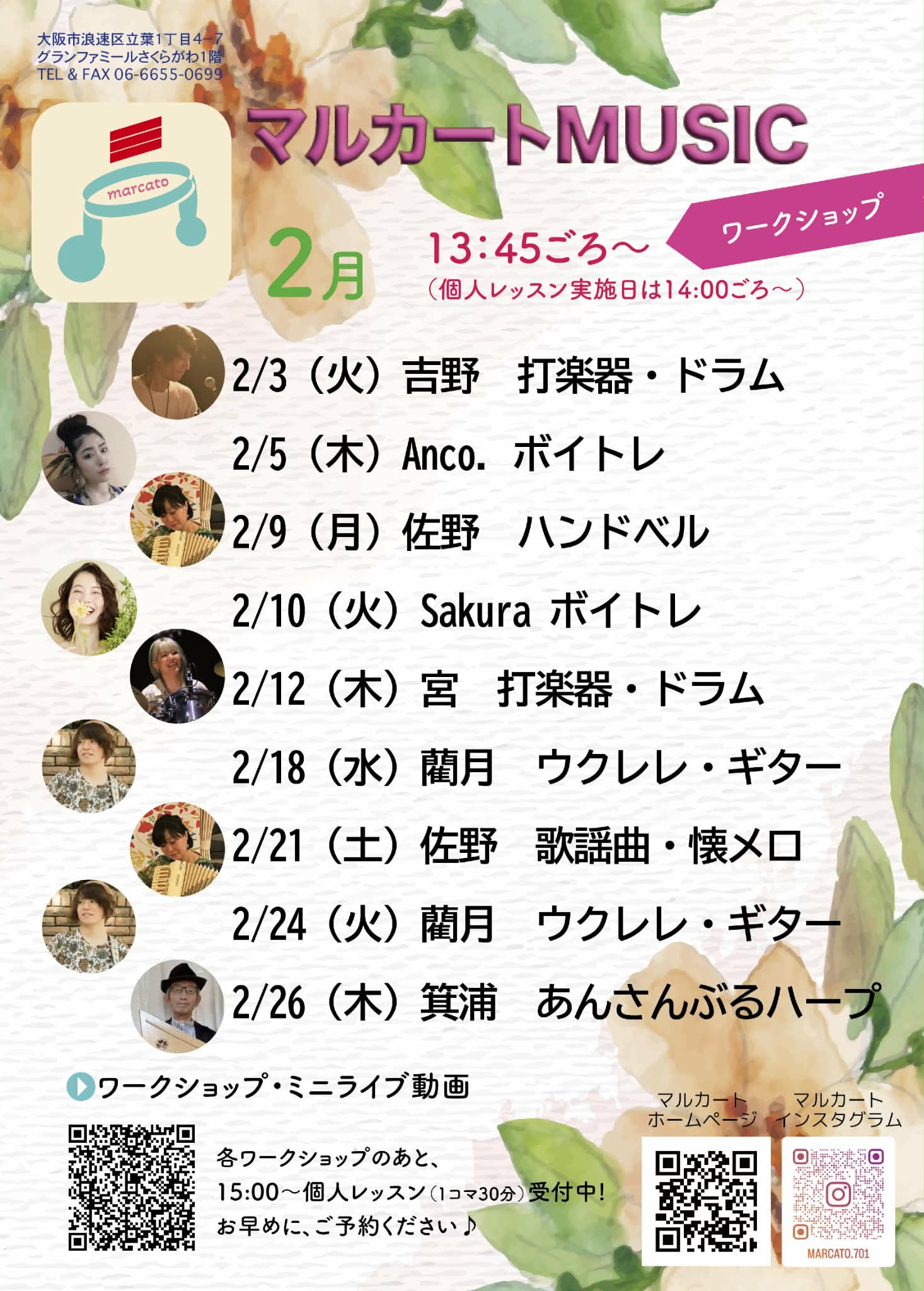 共生型デイサービス マルカートの2026年2月のイベント情報をお知らせ致します。
